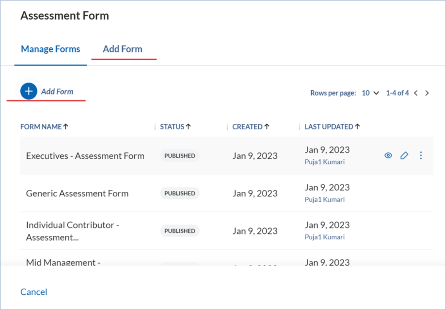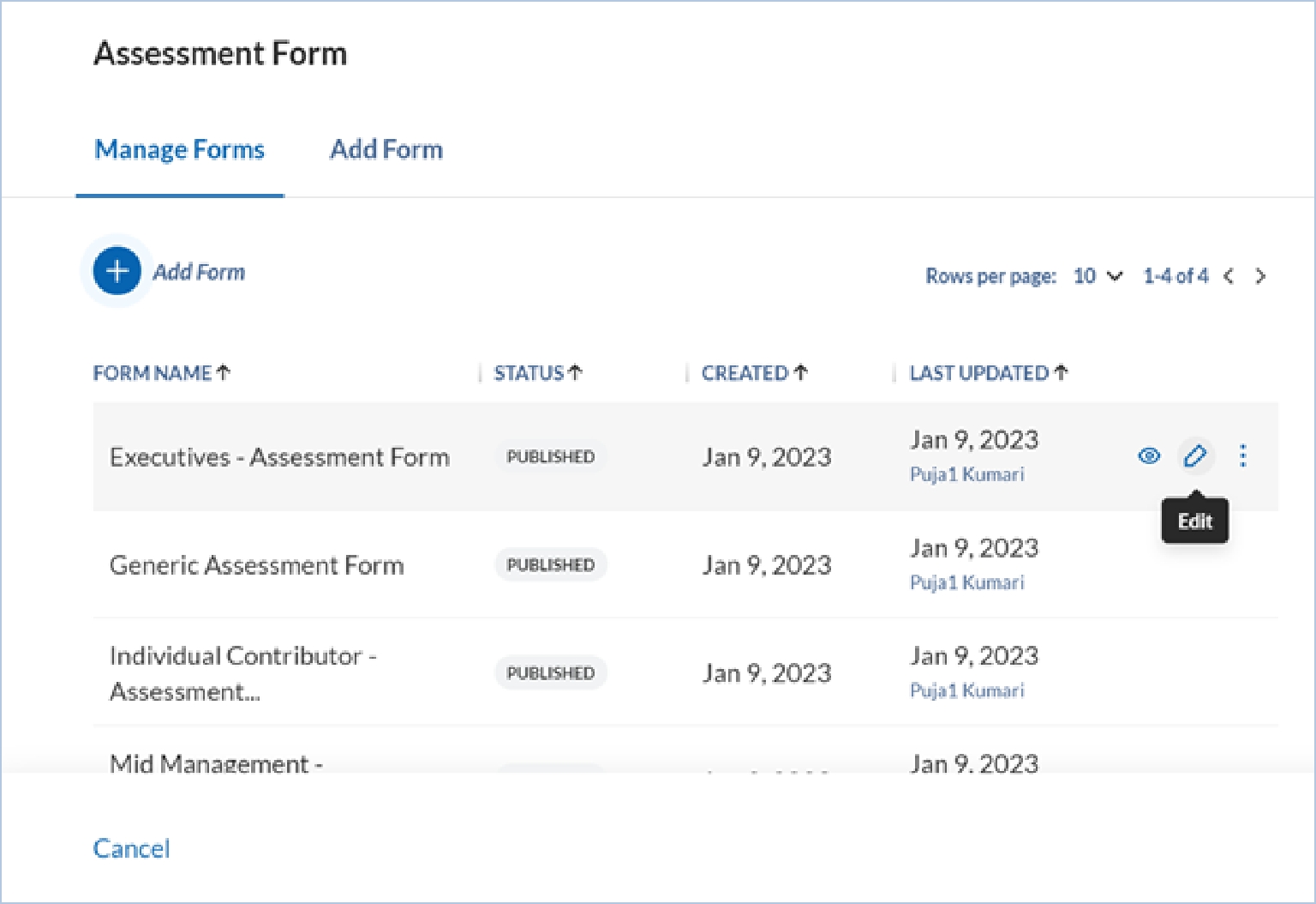 Step 8: From the “Manage Assessment Forms” section, you can edit a form by clicking on the pencil icon.