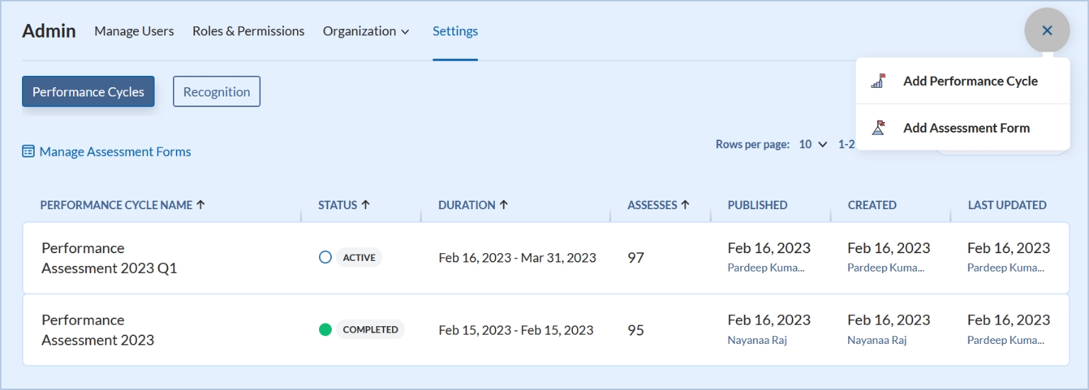 Step 1: Click the “+” icon and choose “Add Performance Cycle”.