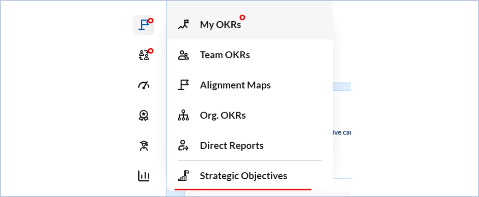 Since the right of strategic objective is given to only a single organization user, he must navigate to Align> Strategic Objectives.