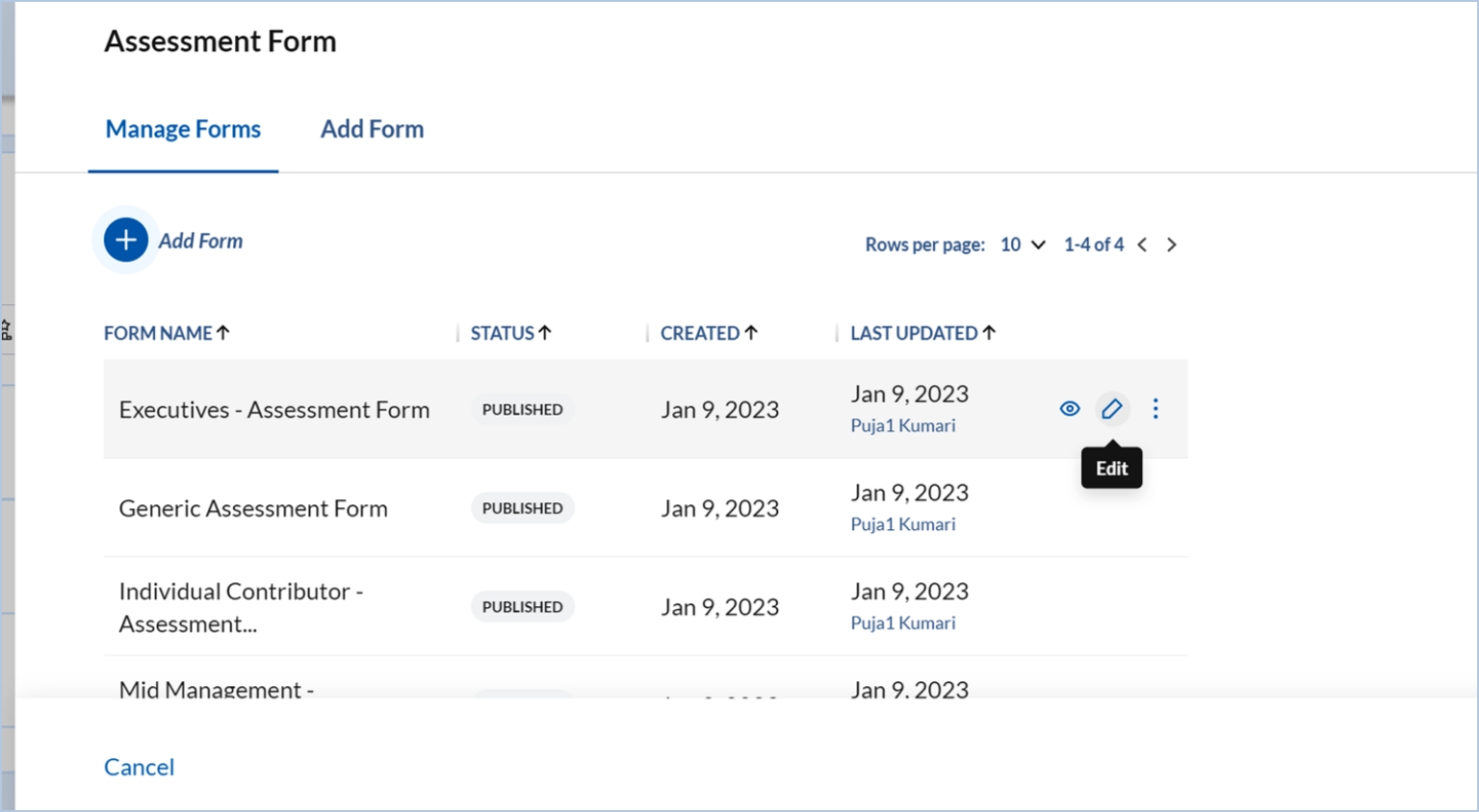 Step 10: You can edit a form from the Manage Forms section by clicking the pencil icon.