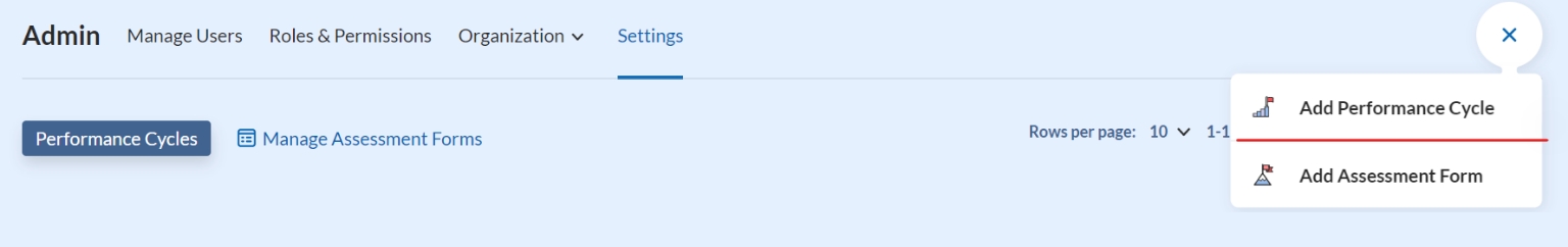 Step 3: Click the “+” icon and “Add Performance Cycle”.
