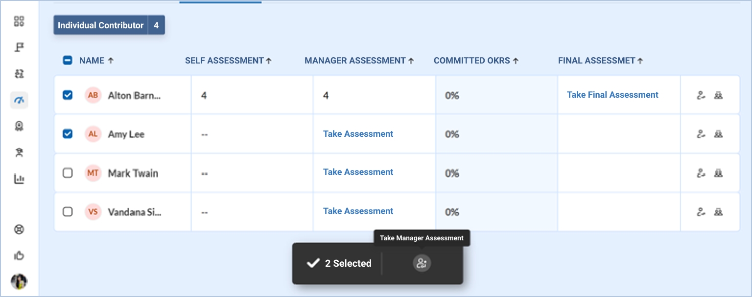 Step 1: Select the reports you want to rate and click on the “Take Manager Assessment” icon below.